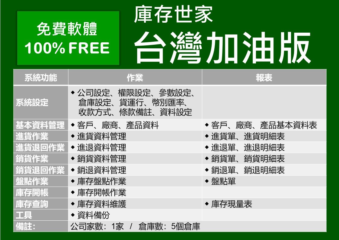 【庫存世家-台灣加油版】為正式授權版、無資料筆數限制、永久免費使用