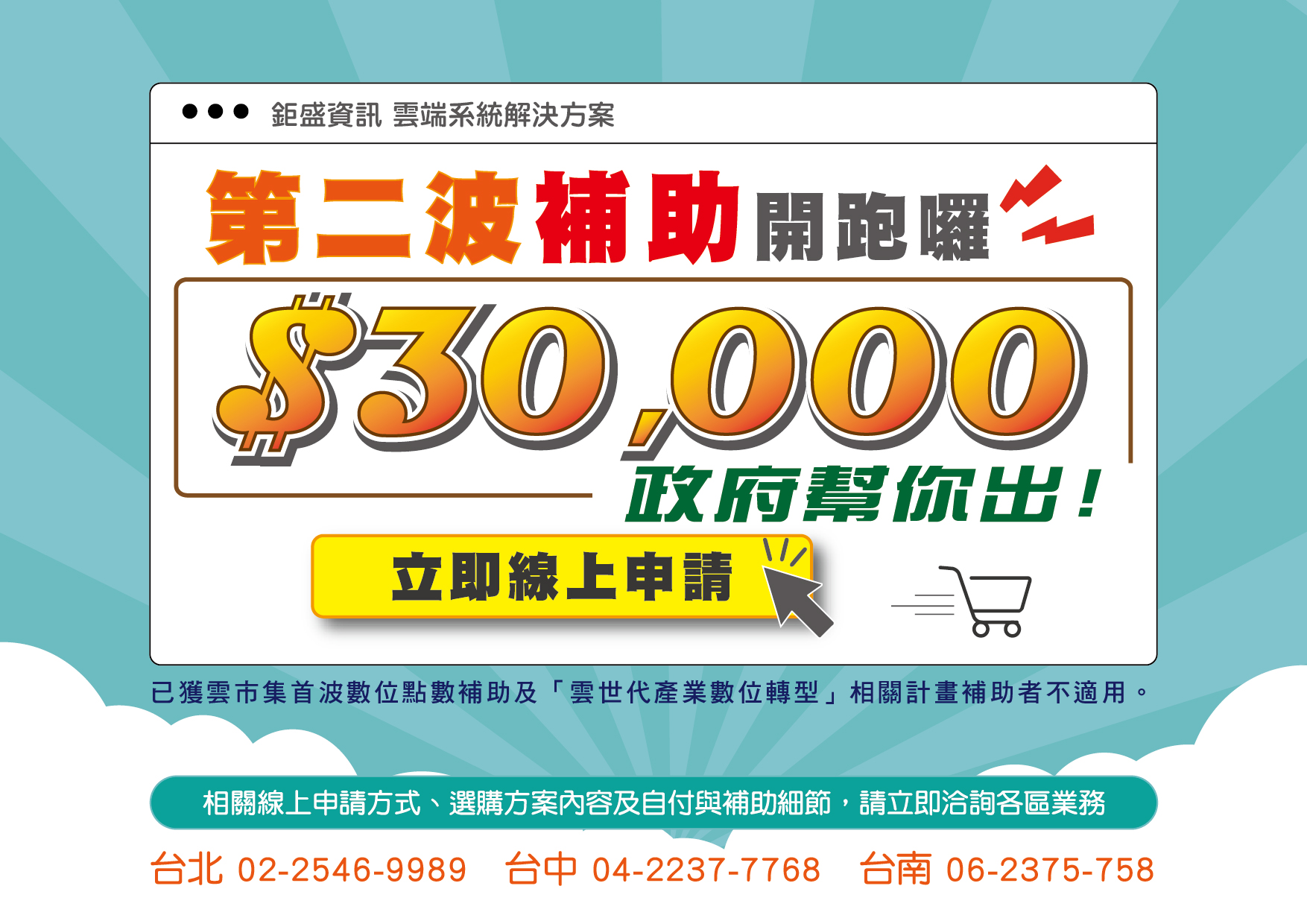 雲市集第二波補助開跑囉~政府幫您出三萬元!